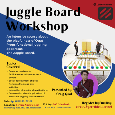 Craig Quat, die Juggle Board en Functional Juggling ontwikkeld heeft, is van 24/3 tot 7/4/2023 in Nederland!
