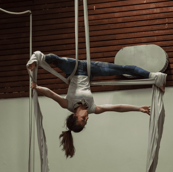 Aerial silk classes in the Circus Studio Rotterdam! There are two classes classified by level: beginners/intermediate & intermediate/advanced.