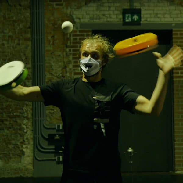 Muziek op zelfgemaakte jongleerinstrumenten: shakerballen, de poi sonoor, de ballondoedelfluit en andere wonderlijke creaties.