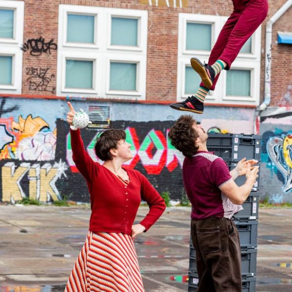 BONJE is een humoristische circustheater voorstelling voor de hele familie. Een acrobatische sensatie, vol herkenbare situaties over ruzie maken, kibbelen, kissebissen, twisten en bakkeleien.