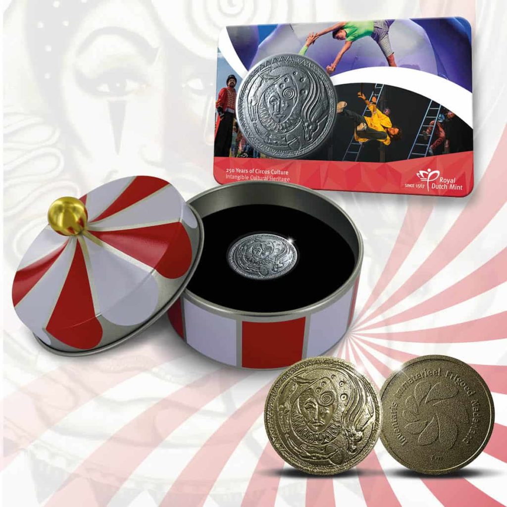 Jaarlijks lanceert de Koninklijke Nederlandse Munt een uitgifte in de lopende serie ‘Immaterieel Erfgoed in Nederland’. Dit jaar brengt het Nederlandse munthuis een eerbetoon aan circuscultuur in verband met de 250-jarige viering. Rond 1770 ontpopte het circus zich tot een heuse cultuur en werden de paardenshows die ten grondslag liggen aan het moderne circus uitgebreid met acts door clowns, acrobaten en jongleurs. In Nederland wordt de circuscultuur breed gedragen en erkend. Sinds 2012 staat circuscultuur bijgeschreven in de Inventaris Immaterieel Erfgoed Nederland. Nederland is het eerste Europese land dat circuscultuur hierin heeft opgenomen.